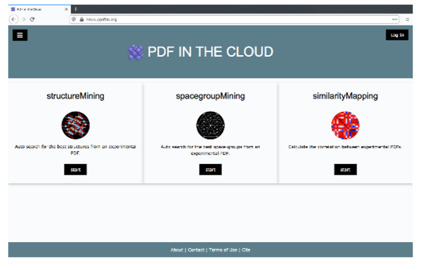 We have developed a cloud-based, AI driven, platform for nanomaterial structure determination: “PDF in the cloud” (PDFitc.org), which consists of various applications for nanostructure determination, including a ML-based classifier for discovering material symmetry from a measured dataset, a high-throughput structure screening tool for predicting the structure of a measured signal, and a data-similarity visualization tool for finding changes in a signal in a time or temperature series.